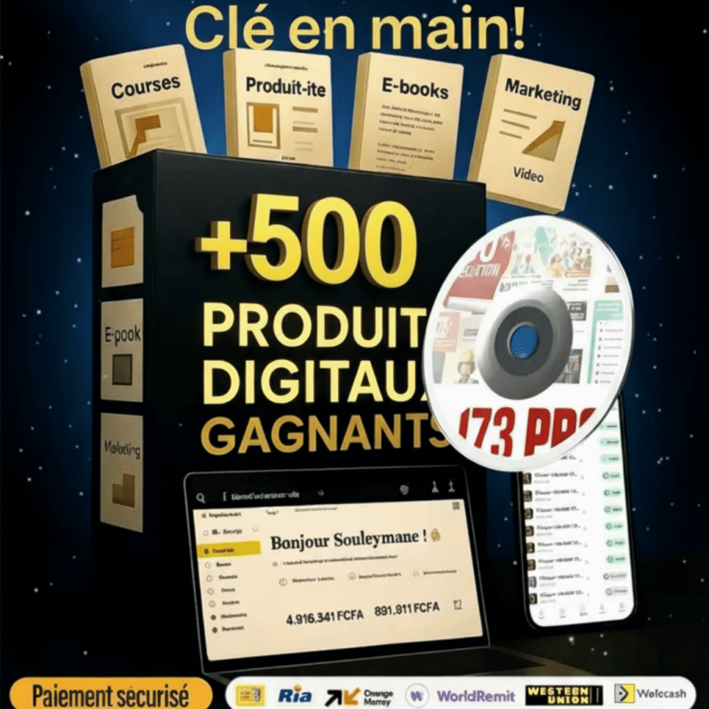 Découvrez notre pack « Clé en main » : plus de 500 produits digitaux prêts à vendre pour lancer ou booster votre activité en ligne en 2026. E-books, formations, modèles marketing, vidéos, fichiers prêts à l’emploi… tout est inclus pour générer des revenus rapidement sans créer de contenu vous-même. Parfait pour les infopreneurs, blogueurs, freelances ou débutants en business digital. Avec déjà plus de 250 acheteurs satisfaits, rejoignez le mouvement maintenant. Facile à utiliser, rentable et instantanément téléchargeable. C’est l’outil qu’il vous faut pour réussir en ligne cette année. N’attendez plus, passez à l’action !